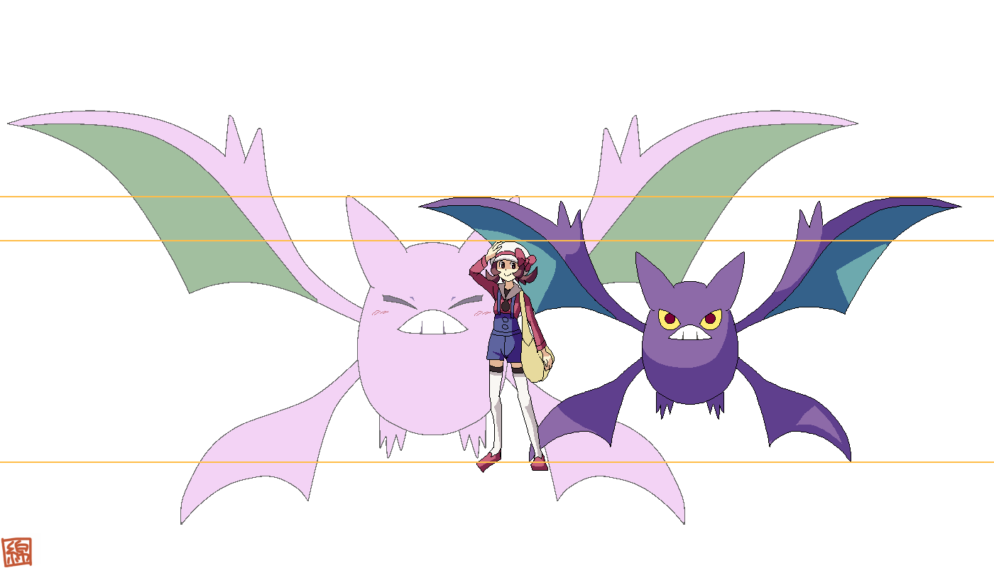 前提として、立体図鑑のクロバットに翼を広げた状態でストップしてもらい、そこから目測してます。