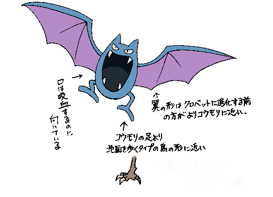 進化したことでクロバットは吸血をし辛そうになってますが、もしかして雑食になったんでしょうか。血以外からも栄養をとれるようになってそうですね。