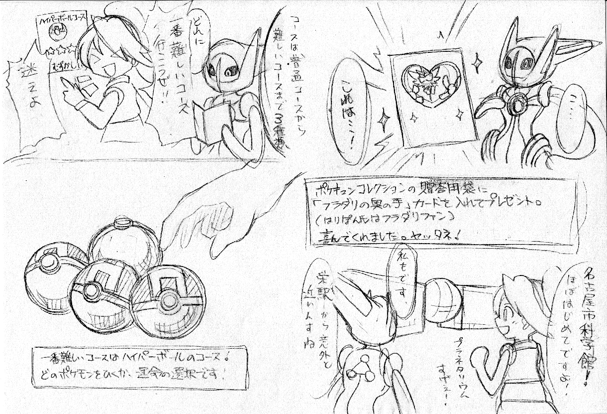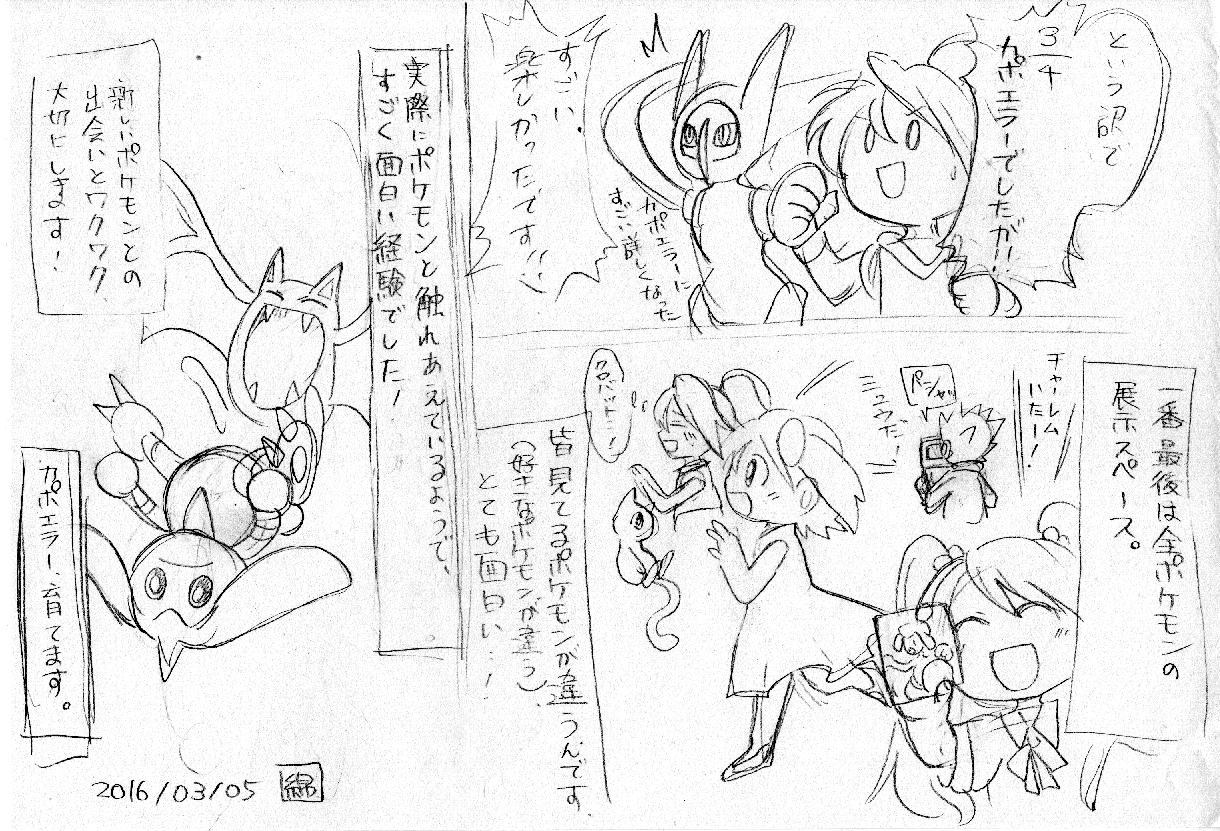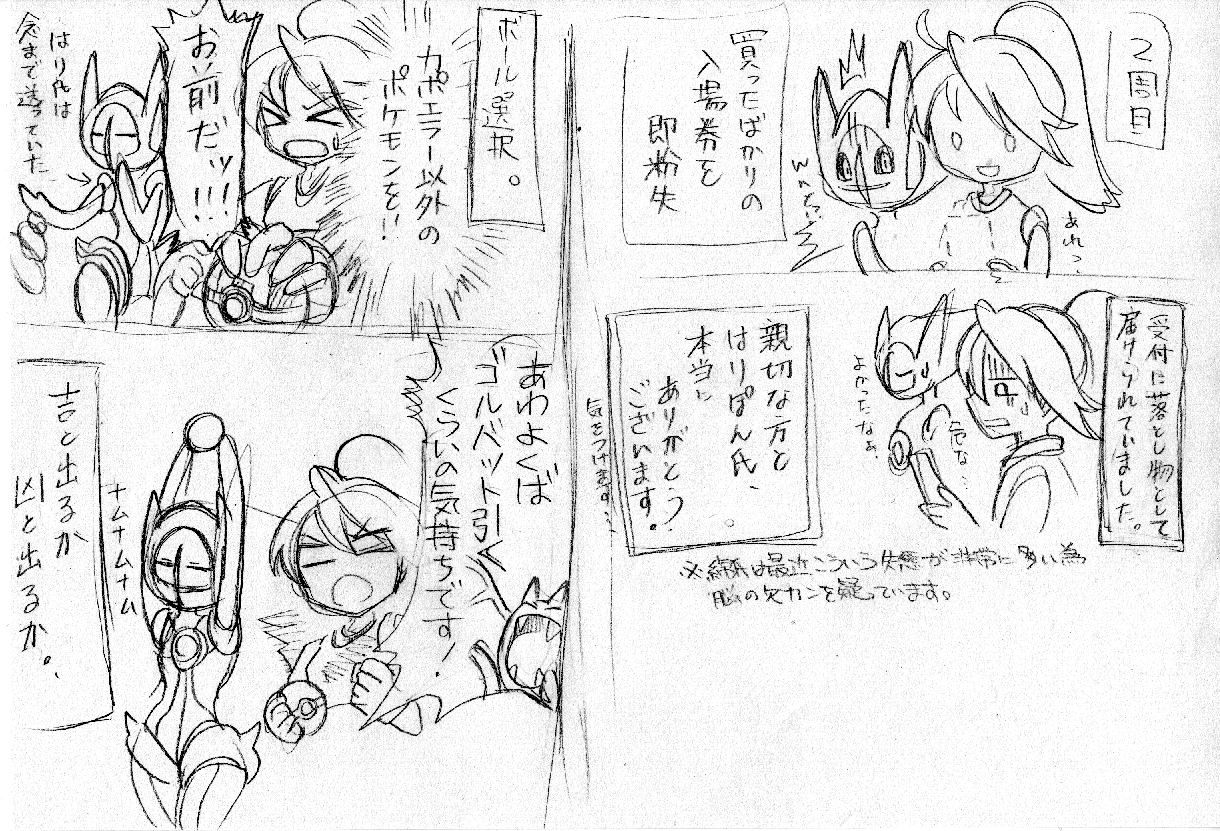 何が面白かったってホントカポエラーラッシュです。はり氏のパートナーが2度もカポエラーだったのは衝撃ですね。運命の糸でがんじがらめと見た…!!ポケモン研究所はポケモンと触れ合えるアトラクションとして、非常に面白い企画でした!また開催して欲しいなぁ…。